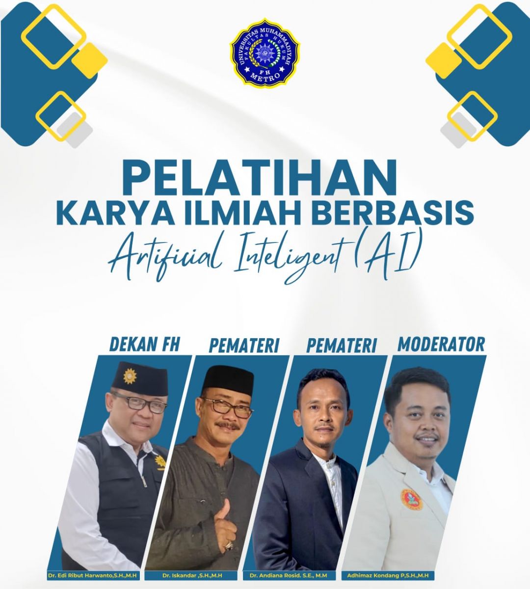 Metro – Dalam rangka meningkatkan kualitas penulisan karya ilmiah mahasiswa dan dosen yang adaptif terhadap perkembangan teknologi, Fakultas Hukum Universitas Muhammadiyah Metro menggelar kegiatan bertajuk Pelatihan Karya Ilmiah Berbasis Artificial Intelligence (AI).