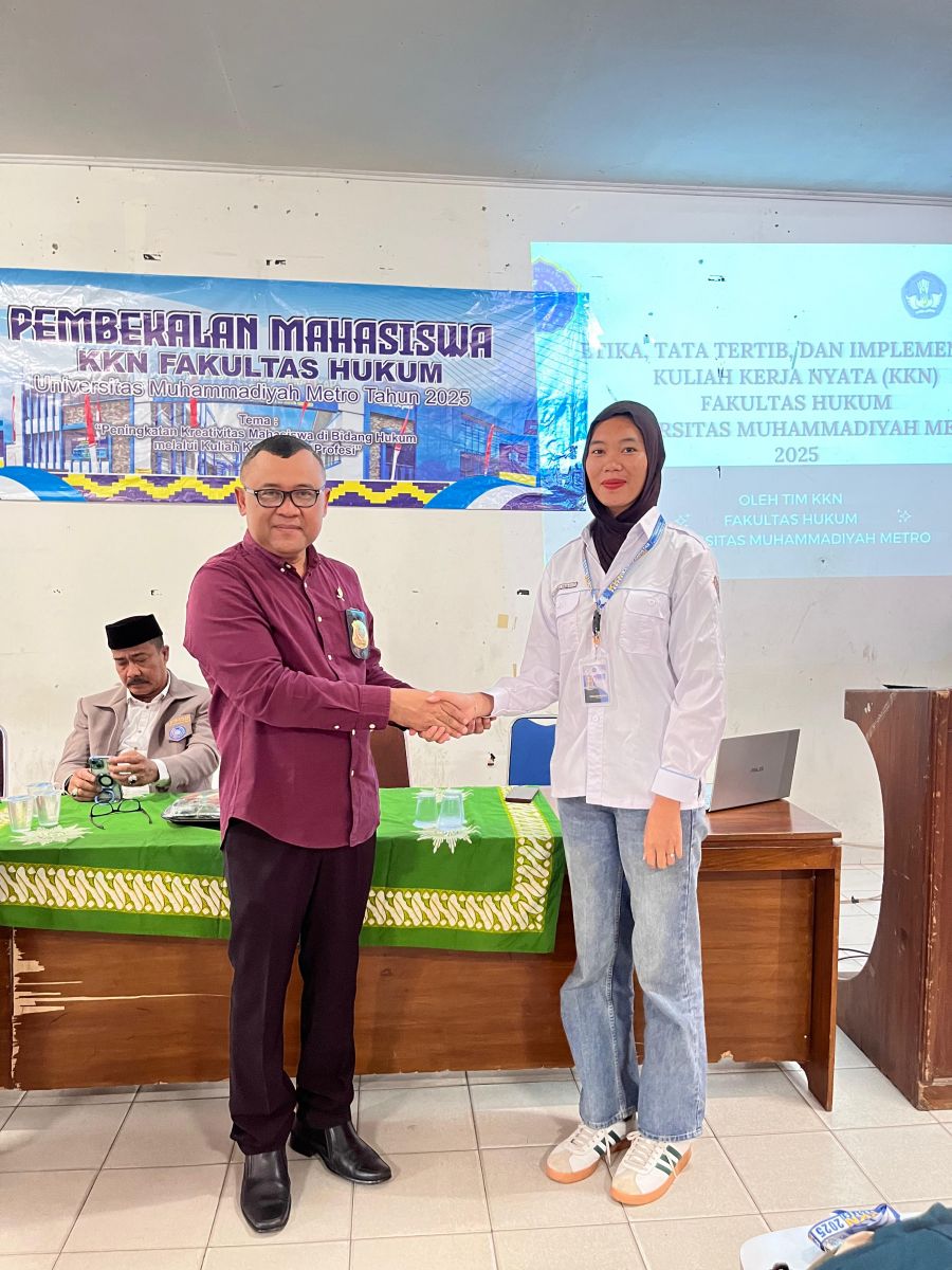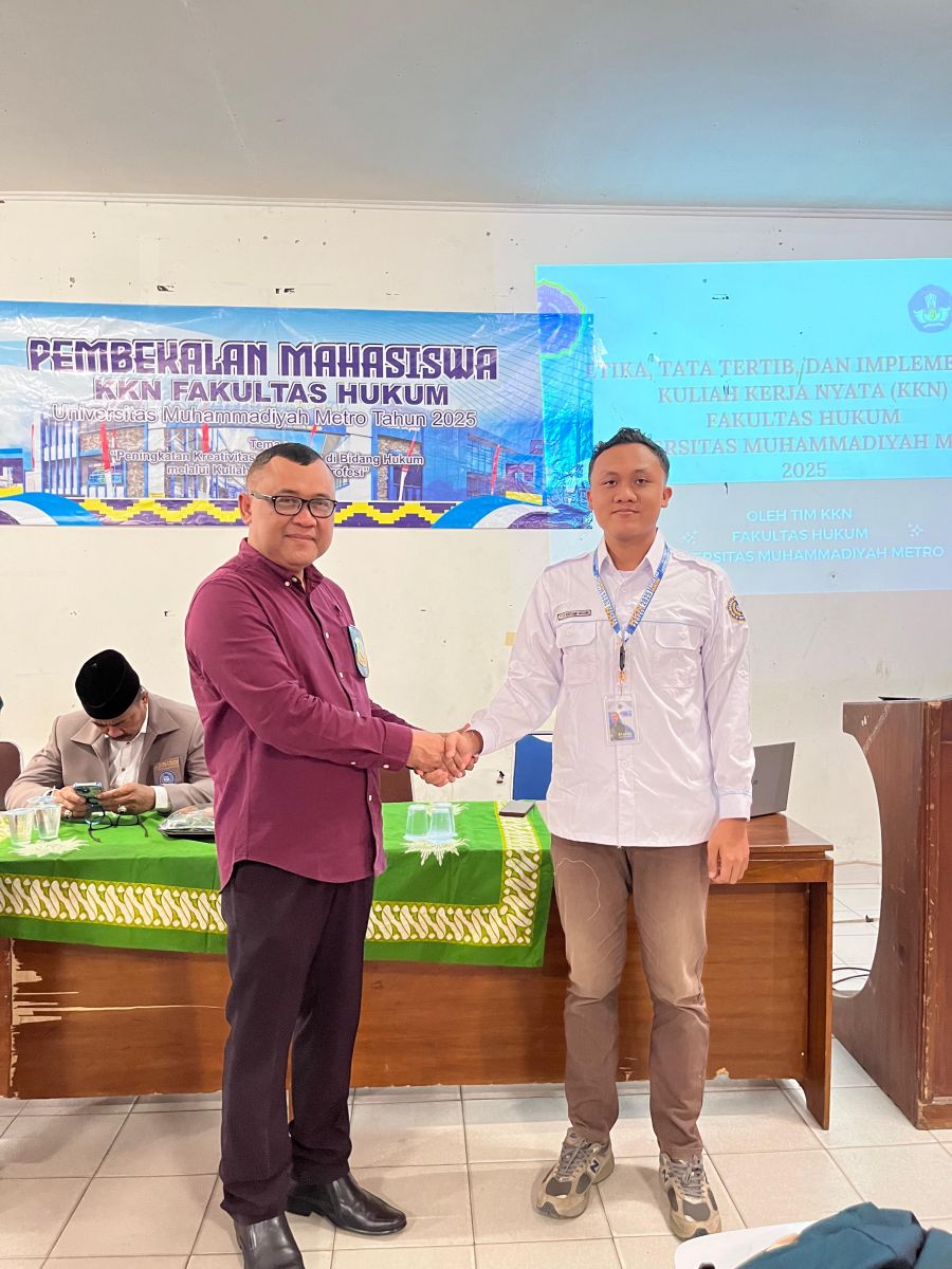 Metro, 18 Juni 2025 – Fakultas Hukum Universitas Muhammadiyah Metro menyelenggarakan kegiatan Pembekalan Kuliah Kerja Nyata (KKN) Profesi bagi mahasiswa peserta tahun 2025. Kegiatan yang dilaksanakan pada Rabu, 18 Juni 2025 ini bertujuan untuk membekali mahasiswa dengan pemahaman dan kesiapan praktik di lapangan sebelum pelaksanaan KKN Profesi yang akan dimulai pada 21 Juni 2025 mendatang.