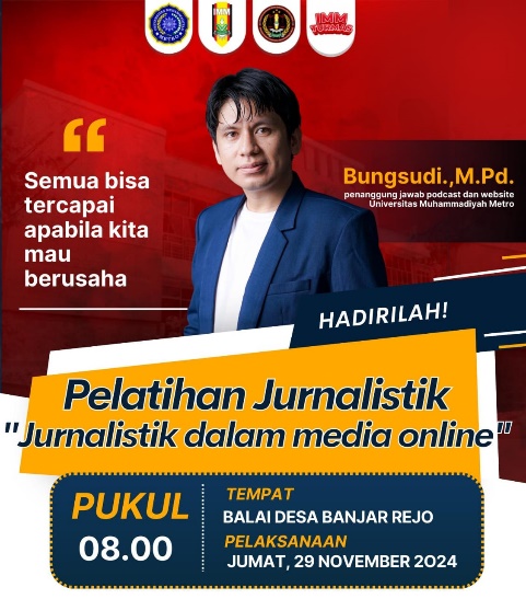 Ketua IMM FH UM Metro Rian Sukmawan, menyampaikan bahwa pelatihan ini merupakan bagian dari agenda pengkaderan IMM yang mendorong kader untuk melek media dan mampu berkontribusi secara kritis terhadap isu-isu sosial di masyarakat melalui tulisan dan pemberitaan yang membangun.